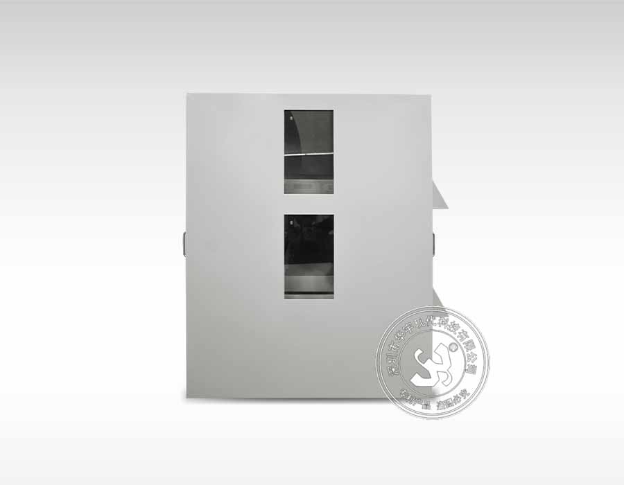 2. 柜体前面:有摄像头的安装孔,有高透明的偏振玻璃;