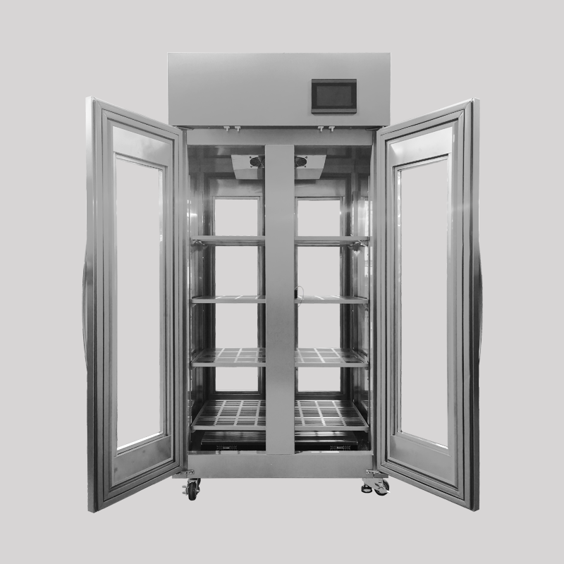 4.柜门:采用大面积双层真空玻璃组成,确保柜体牢固。柜门装有永磁密封胶条,确保柜内的密闭性;